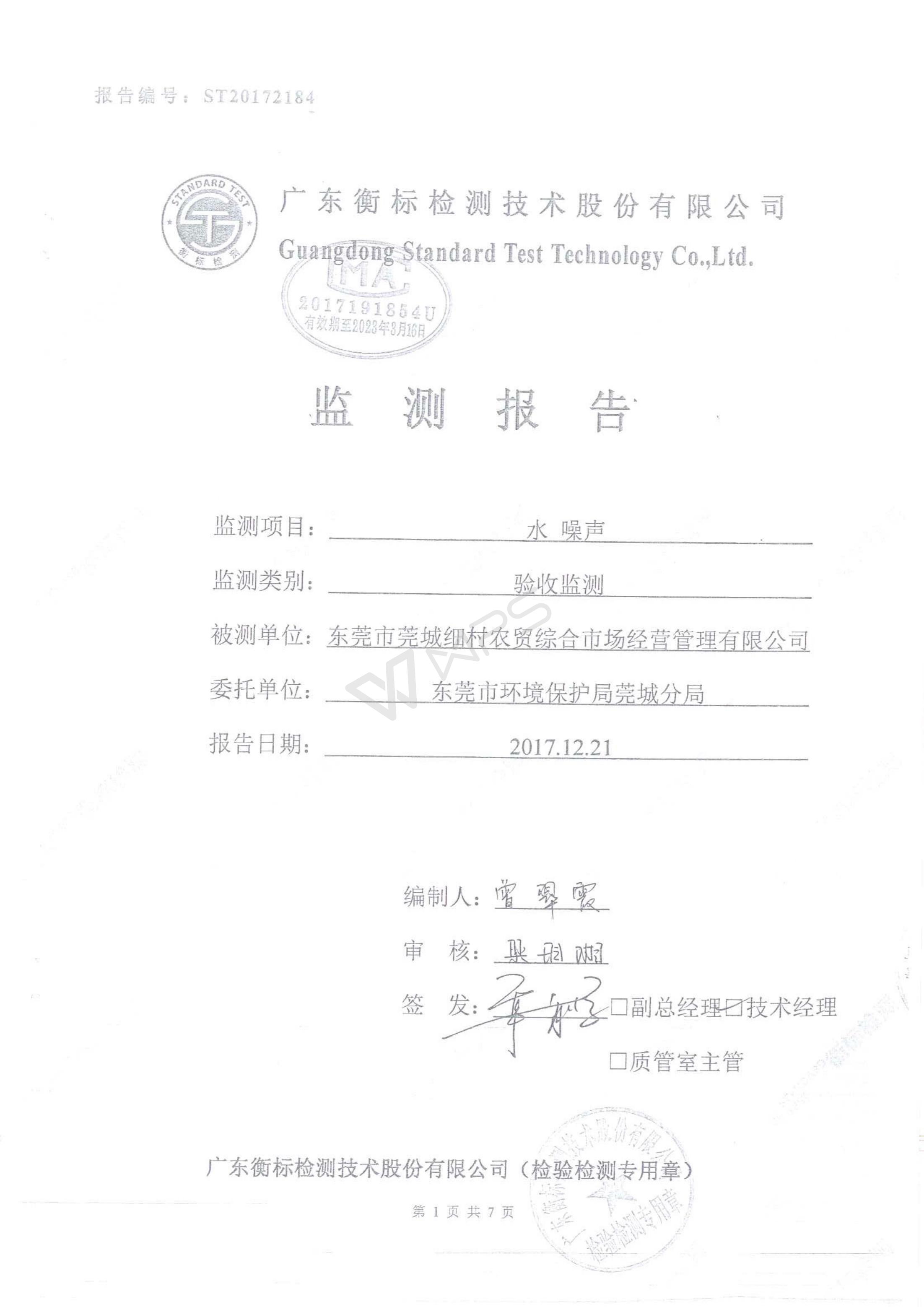 東莞市莞城細(xì)村農(nóng)貿(mào)綜合市場(chǎng)經(jīng)營(yíng)管理有限公司監(jiān)測(cè)報(bào)告_工業(yè)廢水處理_一體化污水處理設(shè)備_廢水處理工程_環(huán)境檢測(cè)公司 版權(quán)所有