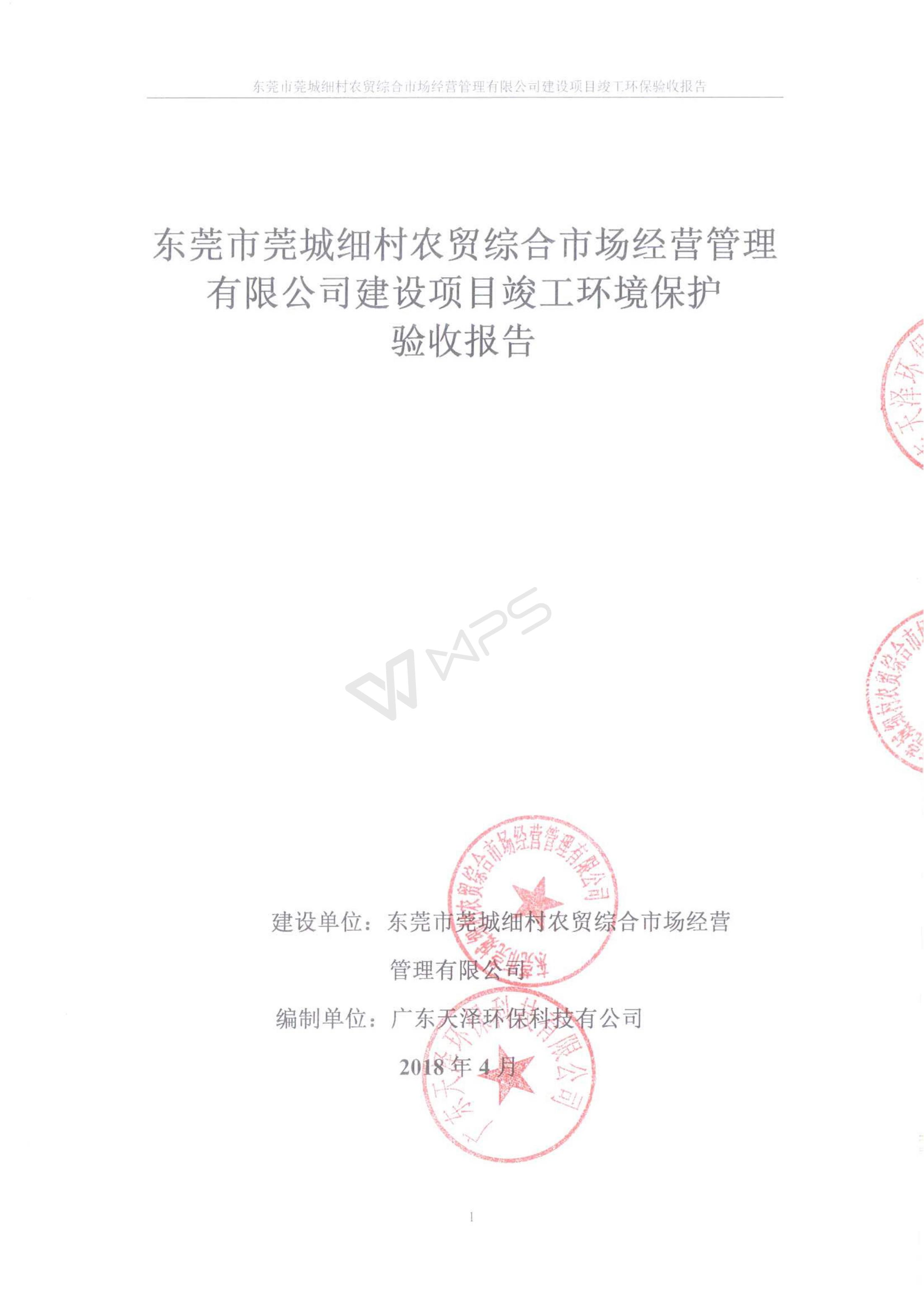 東莞市莞城細村農貿綜合市場經(jīng)營管理有限公司建設項目竣工環(huán)境保_工業(yè)廢水處理_一體化污水處理設備_廢水處理工程_環(huán)境檢測公司 版權所有