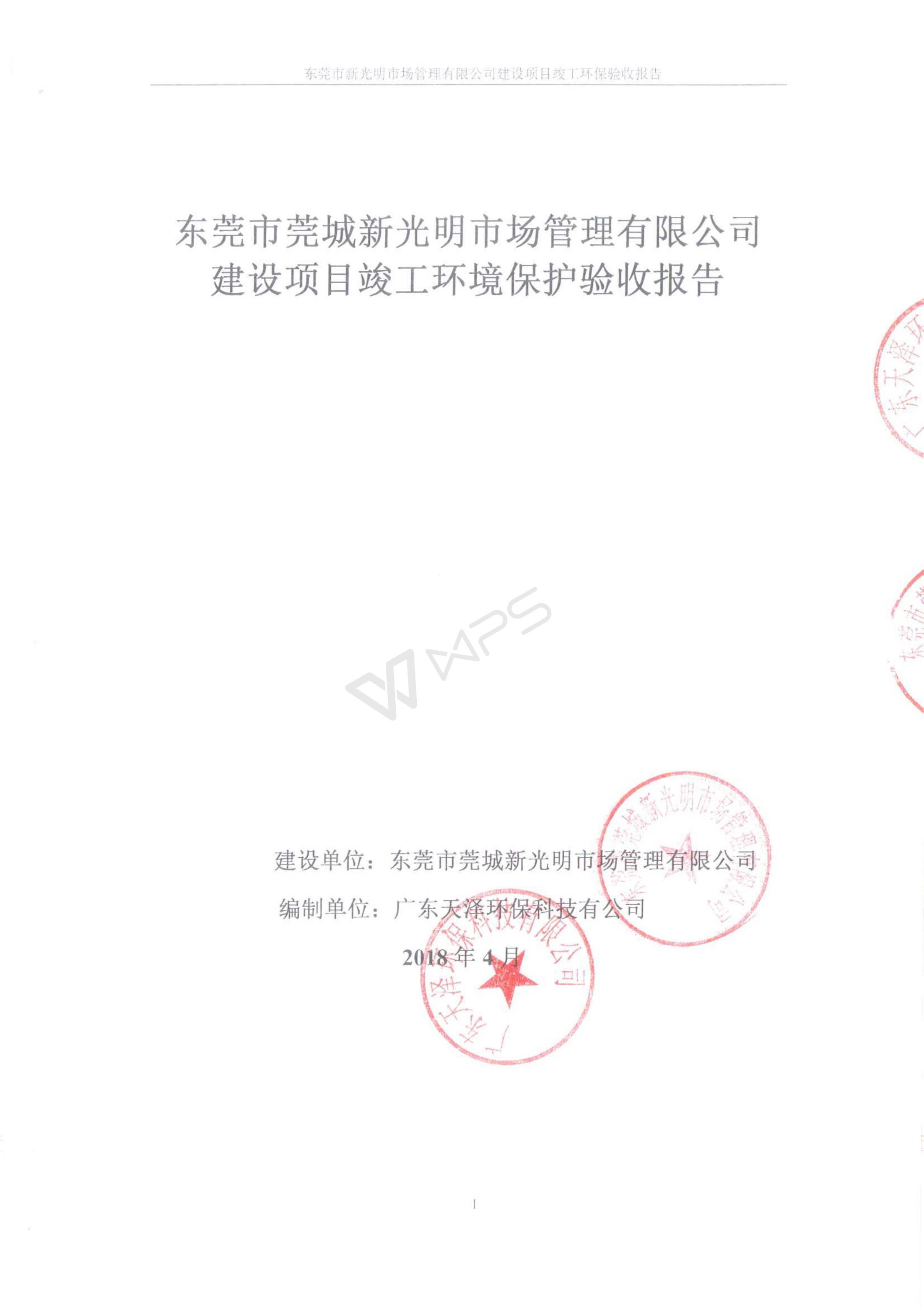 東莞市莞城新光明市場(chǎng)管理有限公司建設(shè)項(xiàng)目竣工環(huán)境保護(hù)驗(yàn)收?qǐng)?bào)告_工業(yè)廢水處理_一體化污水處理設(shè)備_廢水處理工程_環(huán)境檢測(cè)公司 版權(quán)所有
