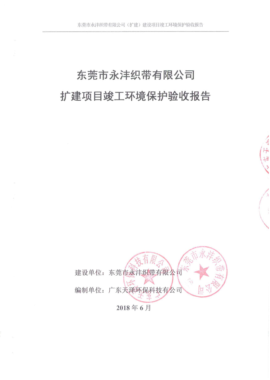 東莞市永灃織帶有限公司(擴(kuò)建)建設(shè)項目竣工環(huán)境保護(hù)驗收報告_工業(yè)廢水處理_一體化污水處理設(shè)備_廢水處理工程_環(huán)境檢測公司 版權(quán)所有