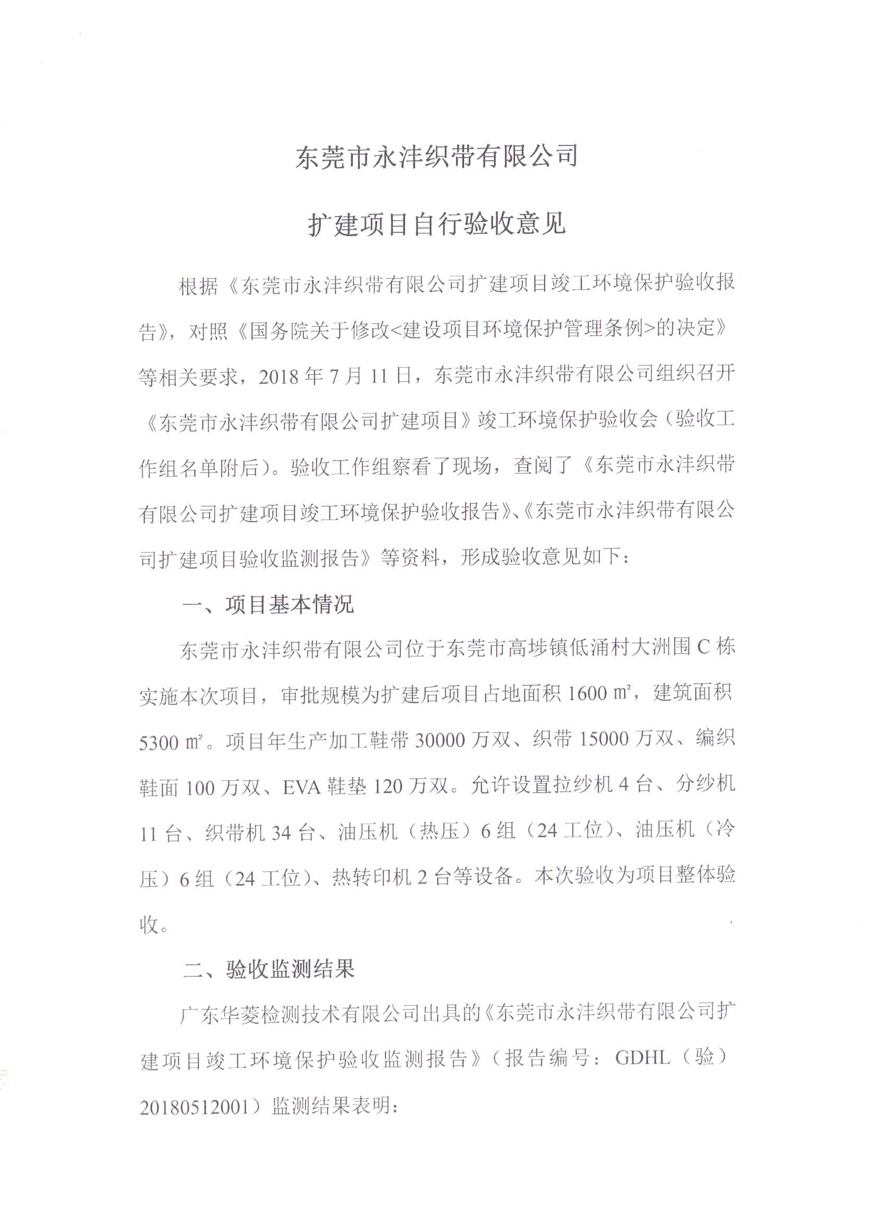 東莞市永灃織帶有限公司(擴(kuò)建)建設(shè)項(xiàng)目竣工環(huán)境保護(hù)自行驗(yàn)收意_工業(yè)廢水處理_一體化污水處理設(shè)備_廢水處理工程_環(huán)境檢測公司 版權(quán)所有