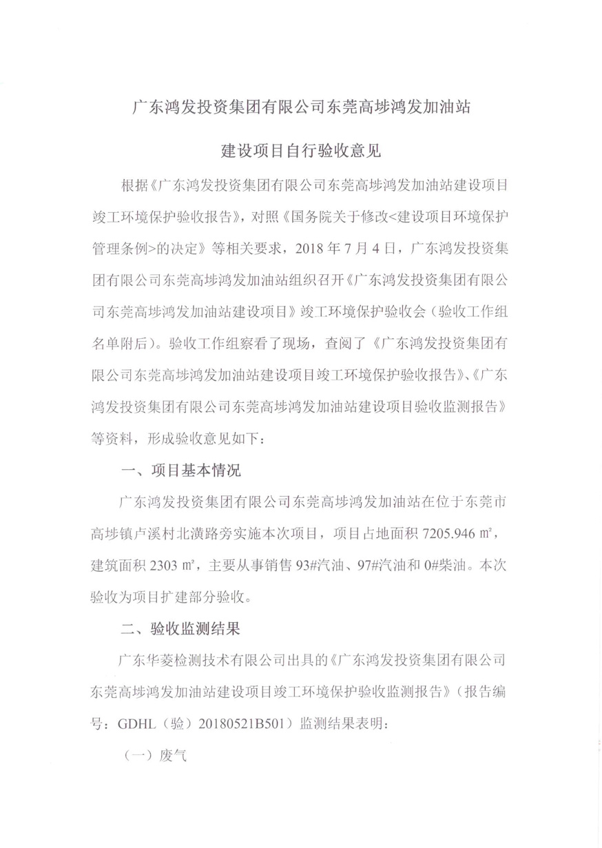 廣東鴻發(fā)投資集團有限公司東莞高埗鴻發(fā)加油站自行驗收意見_工業(yè)廢水處理_一體化污水處理設備_廢水處理工程_環(huán)境檢測公司 版權(quán)所有