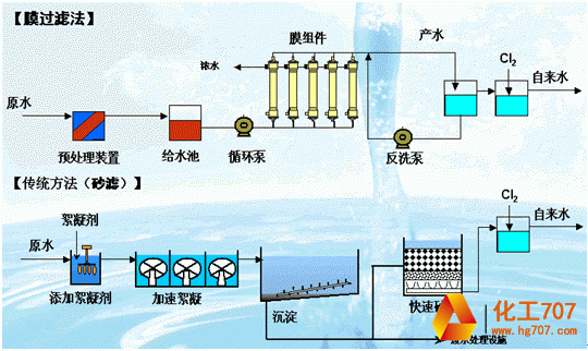與傳統(tǒng)水處理工藝相比,膜法工藝具有以下優(yōu)勢: