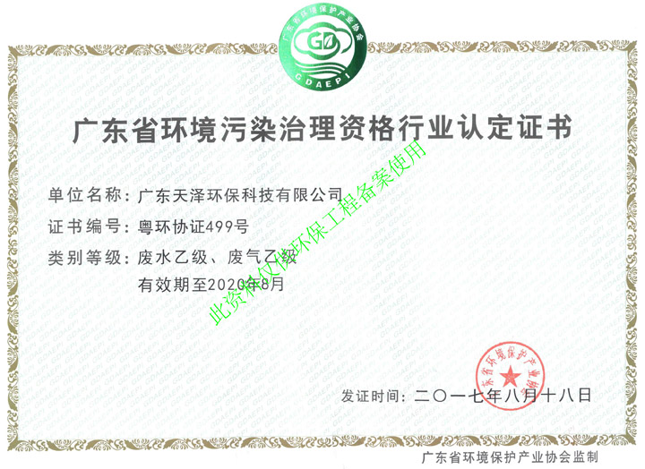 廣東環(huán)境污染治理資格行業(yè)認定證書_工業(yè)廢水處理_一體化污水處理設備_廢水處理工程_環(huán)境檢測公司 版權(quán)所有